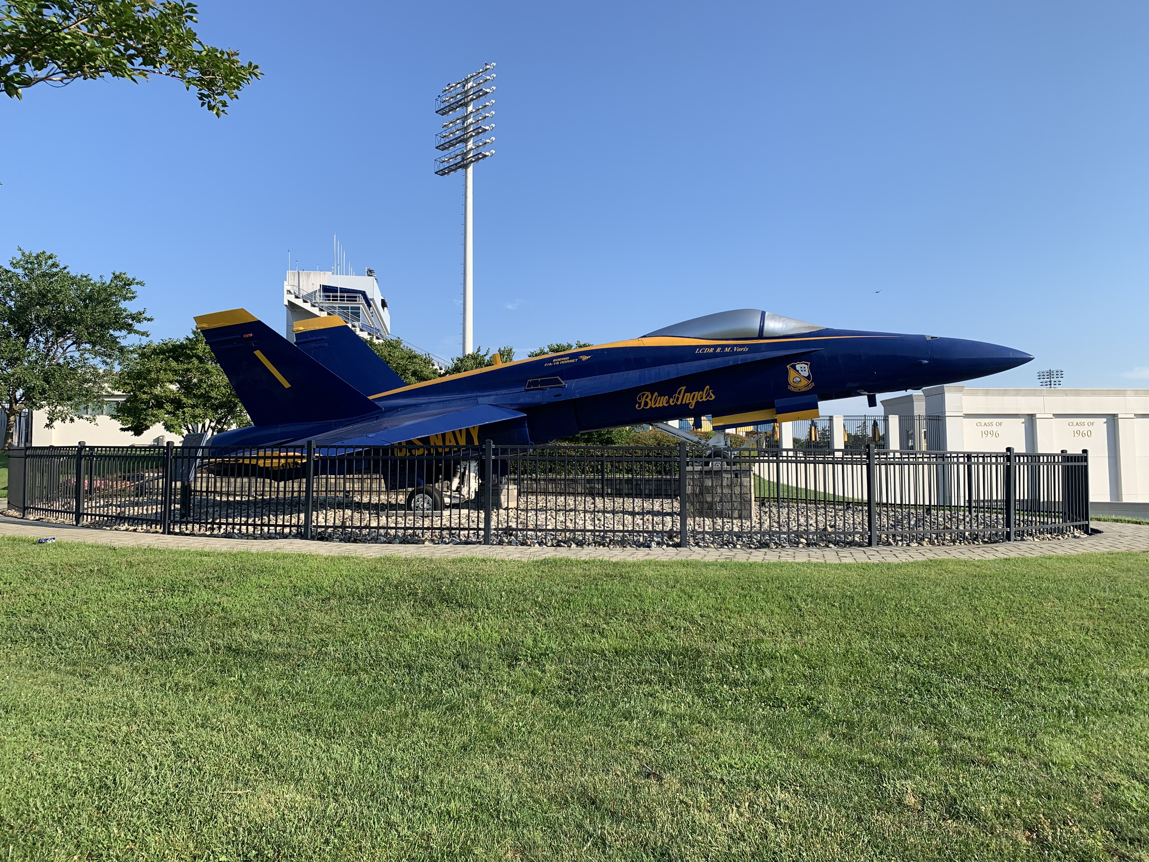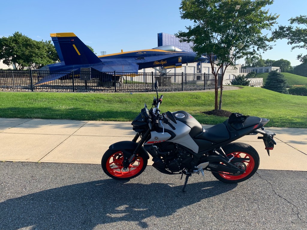 So it’s Saturday. I’m going to try to do everything I want to do today. Off to a good start. I like motorcycles. I love fighter jets. So I rode a motorcycle down to this beautiful monument. It is Navy F18 Hornet in Blue Angel livery.
