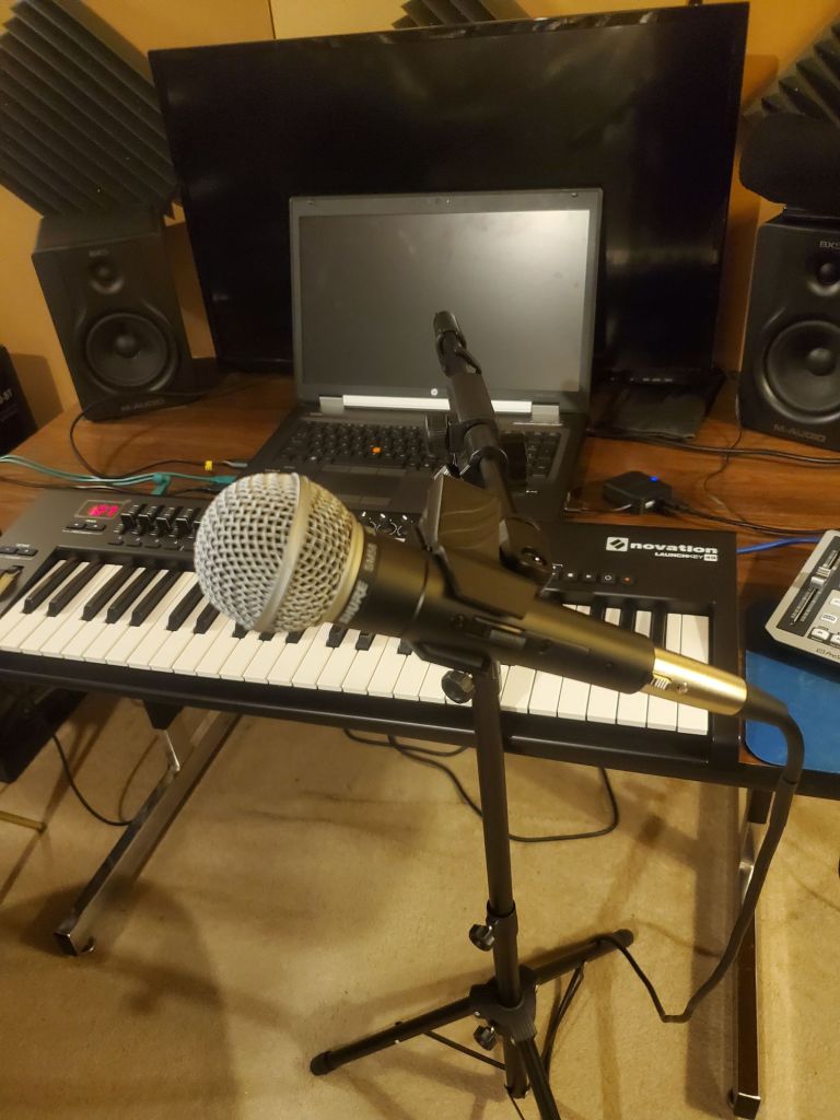 I don’t do enough singing in my life. A few years back I promised myself that I would take on the challenge of singing in public. Little did I know my sons would beat me to it. Both of them released somgs and/or videos recently. I’m falling behind. So for my birthday I got an SM58 microphone and a small portable PA system.